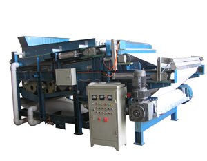在作業(yè)進(jìn)程中,帶式壓濾機(jī)濾液首先通過進(jìn)料泵泵入進(jìn)水管,進(jìn)料泵逐步增加進(jìn)水管的濾液,使濾液在高壓條件下進(jìn)入兩個配水管。配水管連接到帶式壓濾機(jī)上方的兩個進(jìn)氣閥桿,使濾液進(jìn)入板框式帶式壓濾機(jī)濾板上方的兩個分配管。資料分配管是通過在每個過濾板的均勻方向一側(cè)上逐個擠壓和拼接過濾板以及在過濾板的中心通向凹陷的通